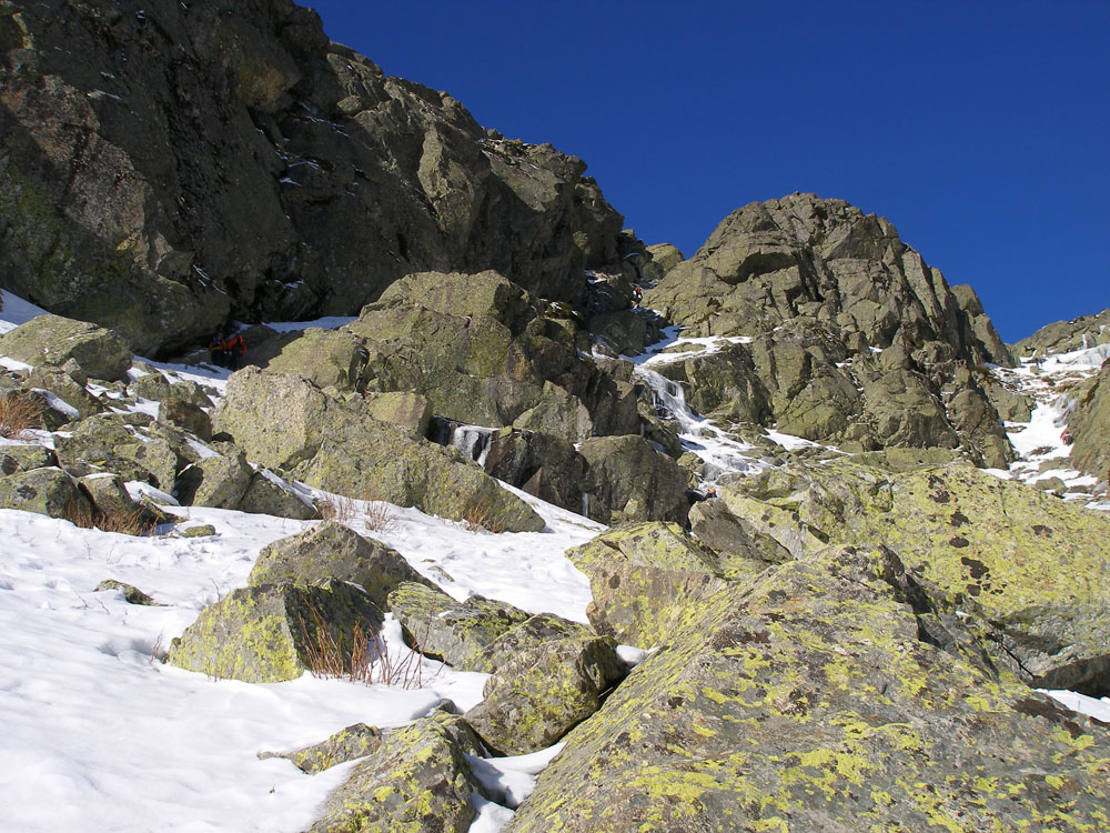 Como es normal en un día de sol como este estaba todo lleno de gente «correteando» por todos lados. En el caso de la Canal de la Ceja había un par de parejas que estaban ya subiendo delante nuestra.