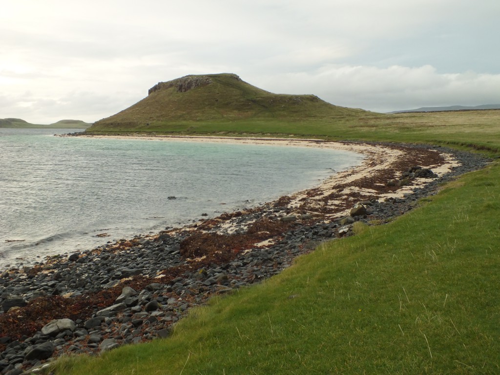 Desde ahí nos fuimos buscando algún lugar remoto y lo mas abierto al mar posible para intentar ver alguna foca, que se supone que es relativamente fácil. Al final acabamos en Coral Beach. Dejamos el coche en Claigan (así viene en google maps) y desde ahí andamos por la pista, durante unos 30-40 minutos hasta llegar a la playa, de arena blanca y muy tranquila.